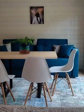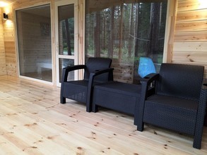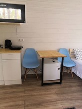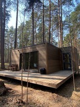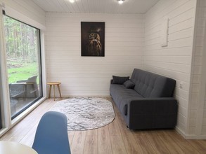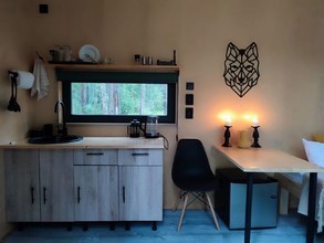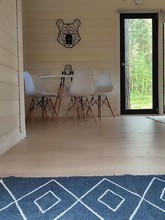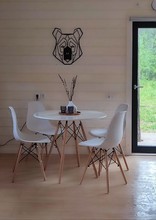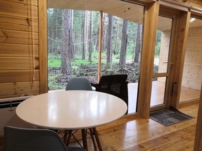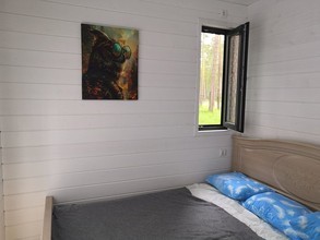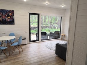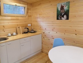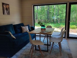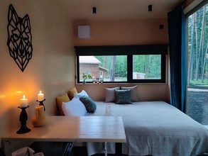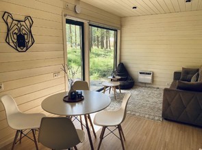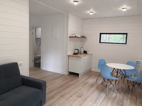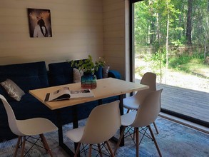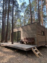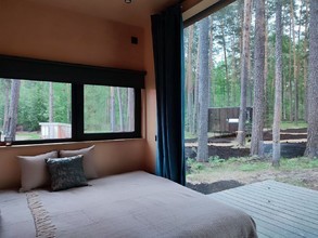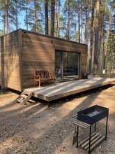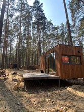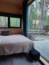На территории глэмпинга расположились уютные домики в скандинавском стиле с панорамным видом на сосновый бор. Домики рассчитаны на разное количество человек. В них есть спальня, обеденная зона и кухонный уголок с плитой, холодильником, чайником, посудой и столовыми приборами, санузел с тропическим душем, проектор для просмотра фильмов. Возле каждого домика установлен мангал, где можно пожарить сочные шашлыки или сделать овощи на гриле. Для гостей приготовят завтраки и обеды, а также аппетитные снеки для перекуса.